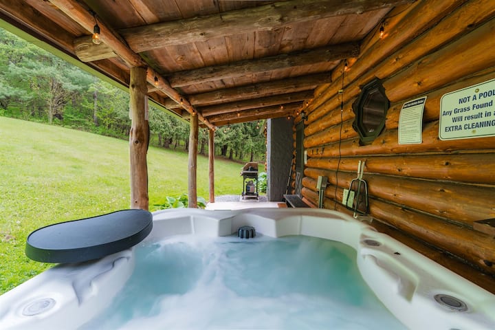 Covered back porch with hot tub & wildlife viewing — soak in the spa while deer, turkey, and foxes